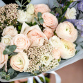 - Роза кустовая пионовидная, Бомбастик, нежно-розовая, 50 см. - 4 шт