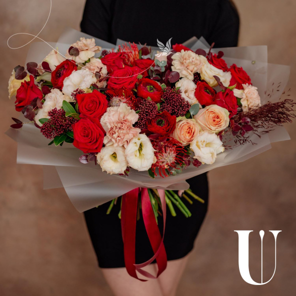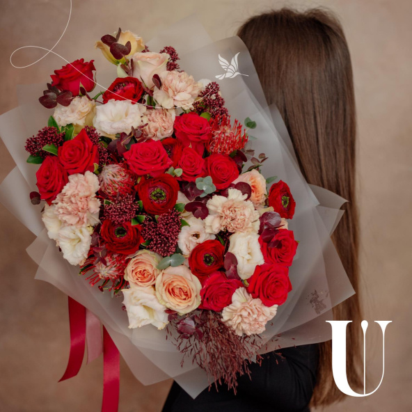 - Роза Вайт Охара, Эквадор, бело-розовая, пионовидная 50 см. - 5 шт