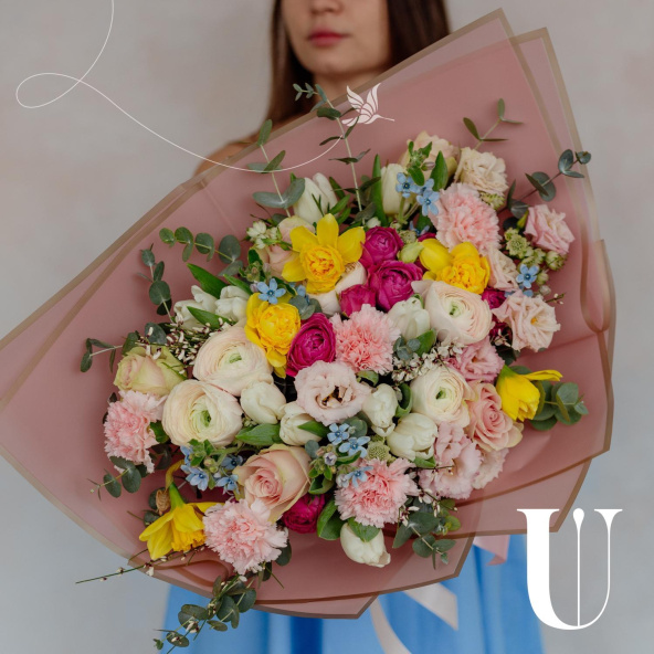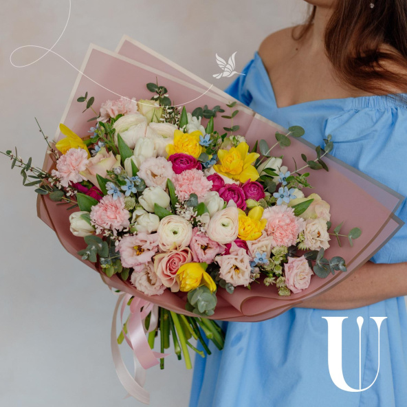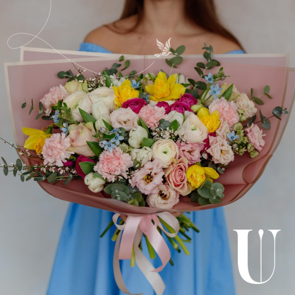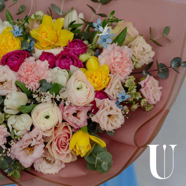 - Тюльпан, Россия, бело-розовый - 10 шт