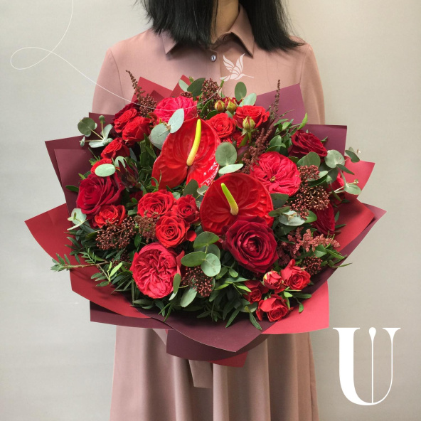 - Роза Ред Пиано, Кения, пионовидная, одноголовая, красная, 50 см - 5 шт