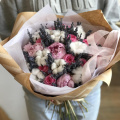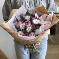 Авторский букет в розовых тонах из пионовидной розы, диантусов в упаковке