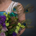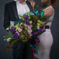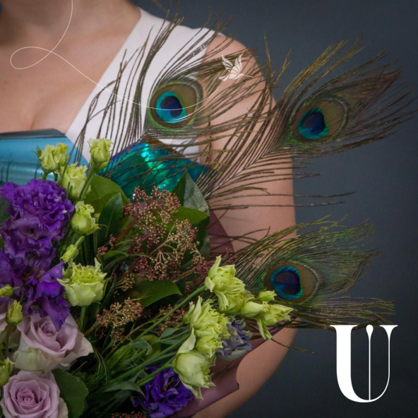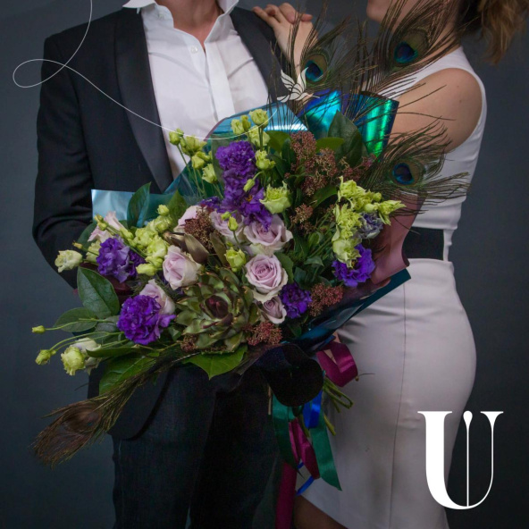 Пышный красавец, созданный покорять сердца, а декоративные перья придают букету экзотичность