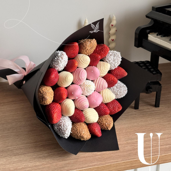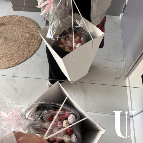 Свежая клубника в сочетании с бельгийским шоколадом даёт незабываемые впечатления. В данной композиции мы использовали белый, молочный и розовый шоколад - что привело к невероятно нежному сочетанию. Так и хочется его съесть