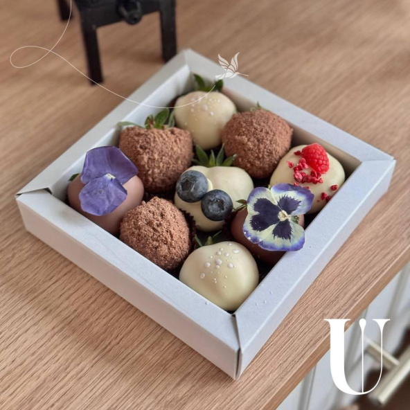 Премиум набор с добавлением свежей малины, голубики, шоколадного печенья, и конечно же сушенных цветов, да! Они съедобные! И безумно красивые