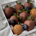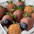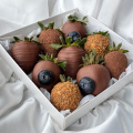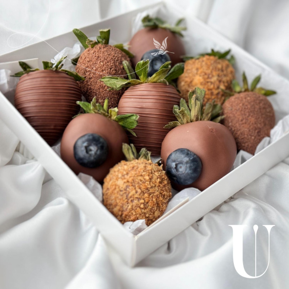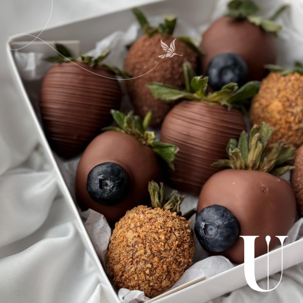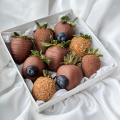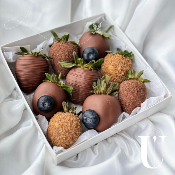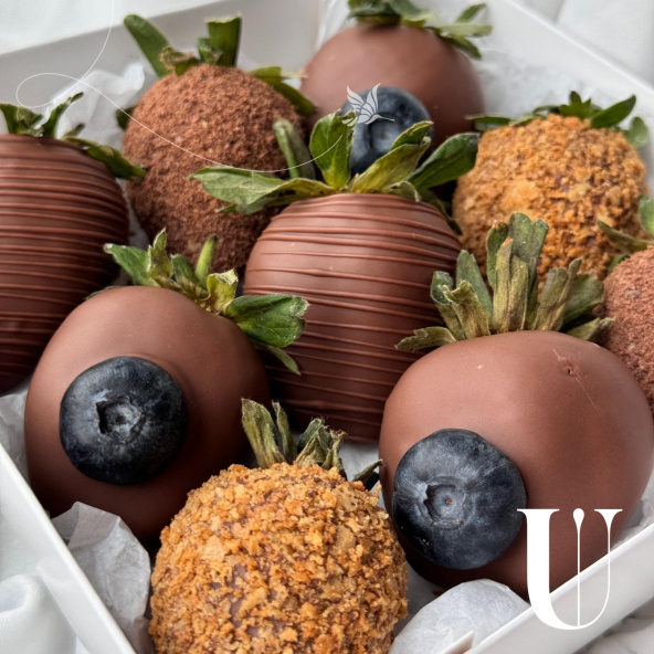 Набор из клубники в молочном бельгийском шоколаде. Мы украсили свежей голубикой и вафельной крошкой. Идеальное сочетание.