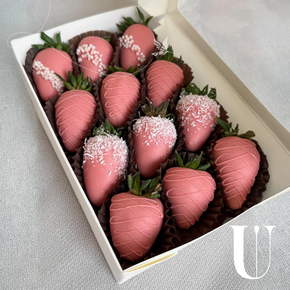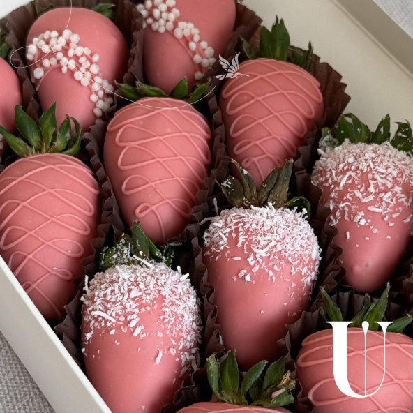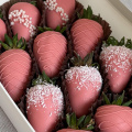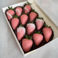 Набор клубники в белом шоколаде в нежном розовом оттенке.