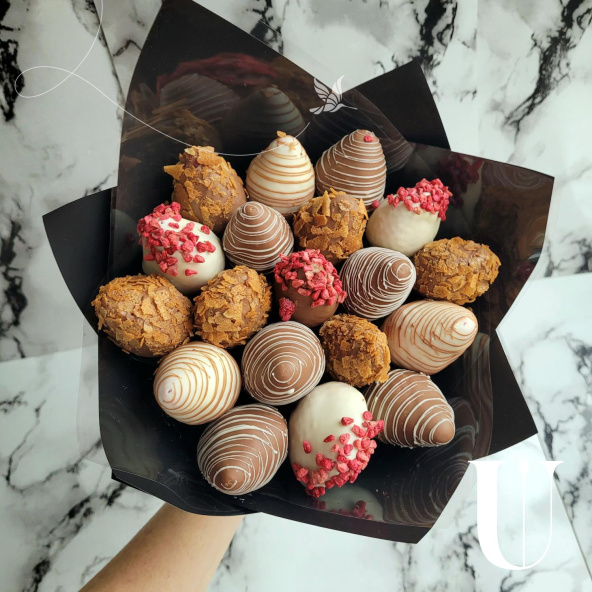 Букеты из ягод в шоколаде становятся всё популярнее благодаря необычному внешнему виду и вкусовым качествам. Такой подарок будет приятным сюрпризом для любой девушки, ценящей оригинальные идеи и сладости высшего качества. Каждый кусочек покрыт нежнейшим белым и молочным шоколадом идеально сочетаясь с ароматной спелой клубникой. Это идеальный выбор для романтического свидания, дня рождения или любого другого праздника.