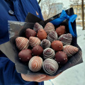 Букет из свежей клубники, покрытой слоями нежнейшего молочного и насыщенного тёмного шоколада. Идеальное сочетание вкусов и текстур, которое станет ярким подарком любимым людям.