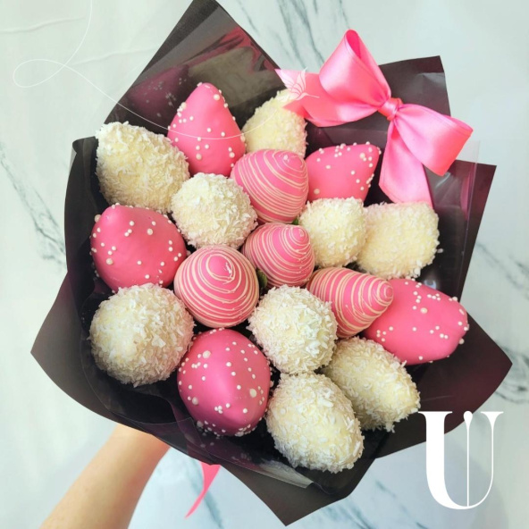 Эксклюзивный десерт: букет из клубники в белом шококоладе с кокосом