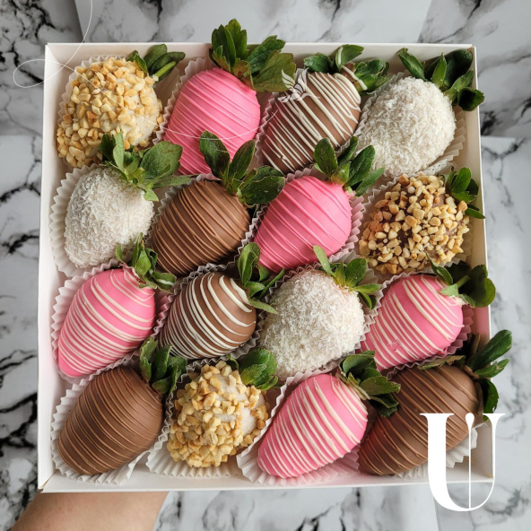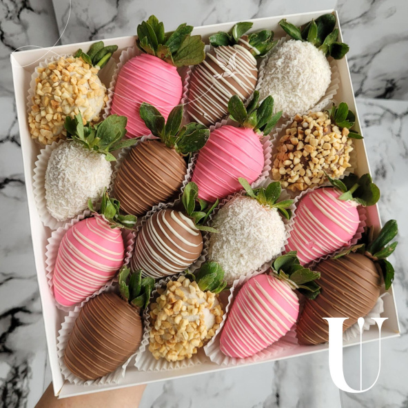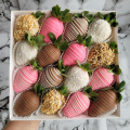 Набор изысканных ягод клубники, покрытых нежным слоем молочного шоколада и утончённым белым шоколадом.Идеально подойдёт для сладкого подарка или особенного угощения.