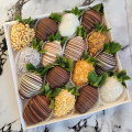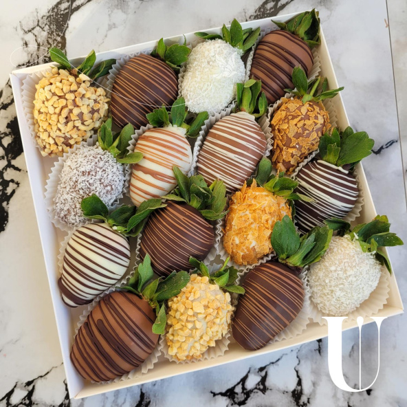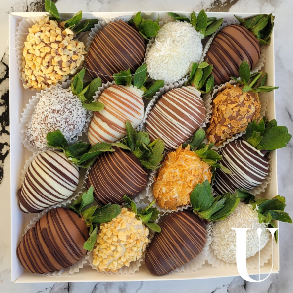 Свежая клубника окутывается тремя оттенками шоколада — насыщенным молочным, воздушным белым и глубоким тёмным. Идеальное сочетание свежих ягод и шоколадных нот дарит истинное удовольствие гурманам, позволяя насладиться каждым оттенком сладости отдельно и вместе одновременно.