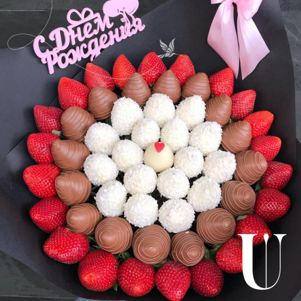 В данном размере букета - 55 ягод отборной и крупной клубники. Средний вес букета - 3.3 кг!