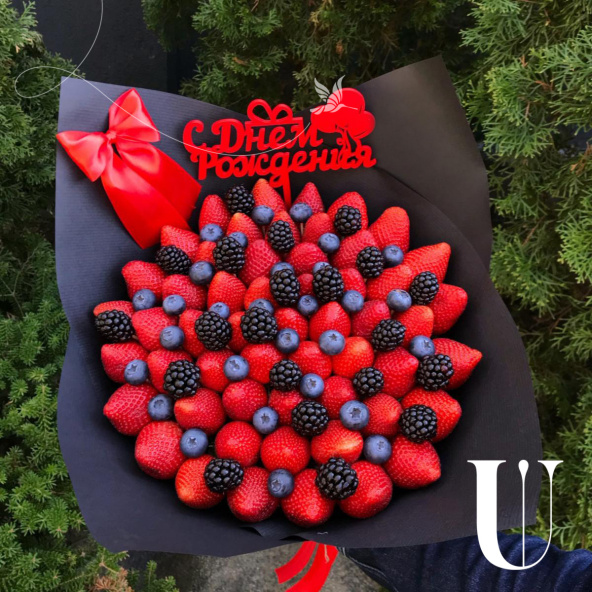 В данном размере букета - до 55 ягод отборной и крупной клубники. Средний вес букета - 3.3 кг!