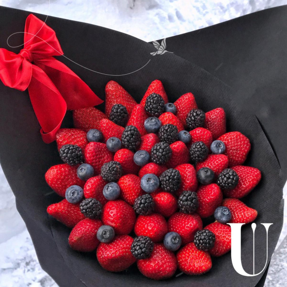 В данном размере букета до 35 ягод отборной и крупной клубники. Средний вес букета - 2.1 кг!