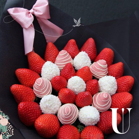 В данном размере букета до 35 ягод отборной и крупной клубники. Средний вес букета- 2.1 кг!