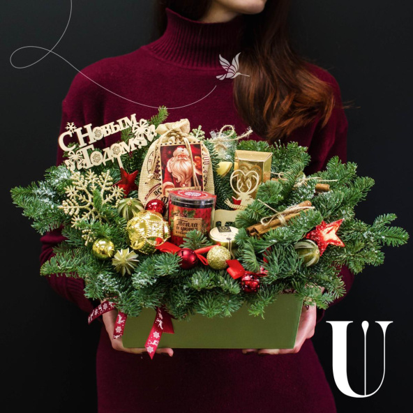 Топпер « С Новым Годом!», шоколадный слиток, черная смородина в шоколаде, чай черный, мед-суфле 30 г, печенье с предсказанием на 2020 год. ( Декор может незначительно отличаться с сохранением цветовой гаммы.)