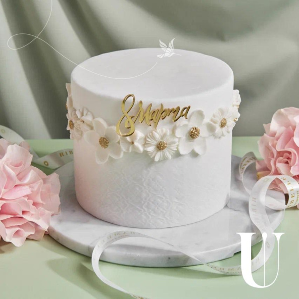 Декор торта: масло сливочное 82,5%, сливки 33%, шоколад, глюкоза, бумага сахарная, паста модела, диоксид титана, краситель пищевой
