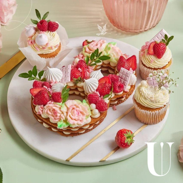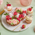 Состав: мука пшеничная в/с, сахар, яйцо куриное, масло сливочное 82,5%, мед гречишный, мед цветочный, сыр креметте, сливки растительные, пудра сахарная, шоколад, молок 3,2%, пюре малины с/м, клубника свежая, малина, кислота лимонная, сок лимонный, сода пищевая, разрыхлитель, соль пищевая, пектин, краситель пищевой.