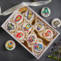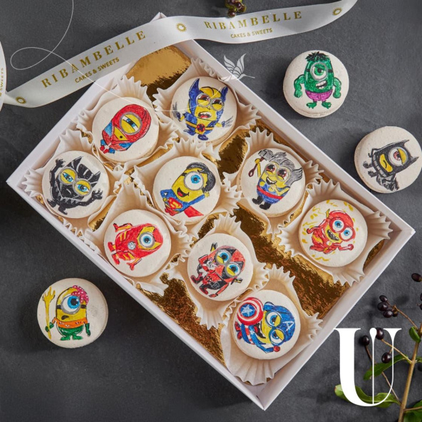 СОСТАВ: мука миндальная, пудра сахарная, сахар, краситель пищевой, яйца куриные, сливки 33%, пюре малина с/м, паста фисташковая, шоколад, крахмал кукурузный, масло сливочное, сок лимонный, глазурь.