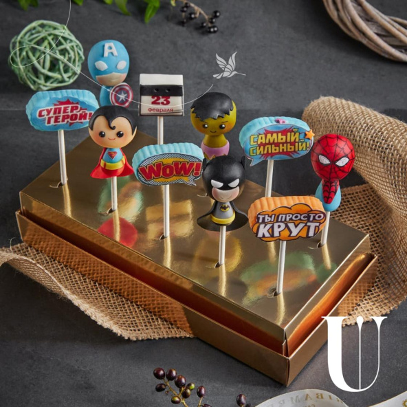 СОСТАВ: мука пшеничная, сахар, яйцо куриное, какао, масло сливочное, сгущённое молоко, краситель пищевой, соль пищевая, сахар ванильный, шоколад, мастика Модел паст, сахарная бумага.