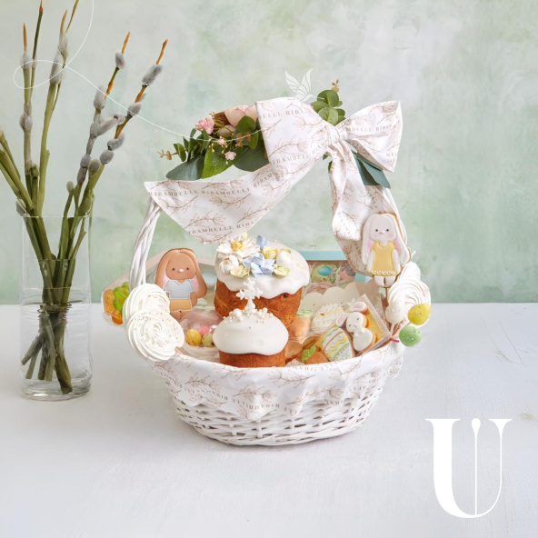 Кулич Пасхальное утро: молоко, сливки 33%, мука в/с, дрожжи сухие, сахар, яйцо куриное, сахар ванильный, соль пищевая, цедра лимона , масло сливочное 82,5%, разрыхлитель, изюм, клюква вяленая, цукаты, помадка , пудра сахарная, мастика, глазурь сахарная, посыпка сахарная.