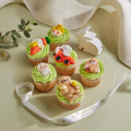 Состав: сыр креметте, мука в/с, мастика модел паст, яйцо куриное, сливки растительные, сахар, масло сливочное 82,5%, пудра сахарная, соль пищевая, разрыхлитель, краситель пищевой, ароматизатор ваниль, паста десертная.