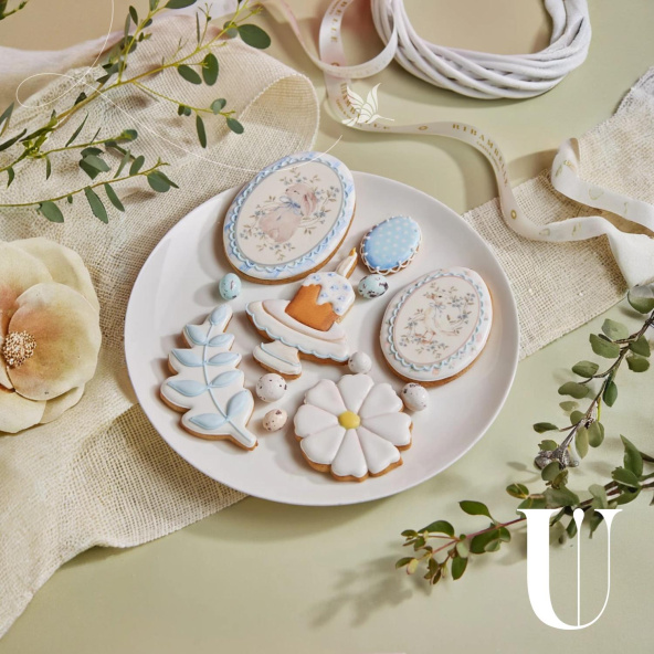 Состав: мука пшеничная в/с, яйцо куриное, глазурь, масло сливочное 82,5%, сахар, орех мускатный молотый, корица молотая, имбирь молотый, сода пищевая, сахар ванильный, соль, кардамон, разрыхлитель, мёд цветочный, краситель пищевой, сахарная бумага, мастика модел паст.