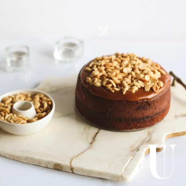 В основе брауни, декор - соленая карамель и арахис. Вес 900 г.+-