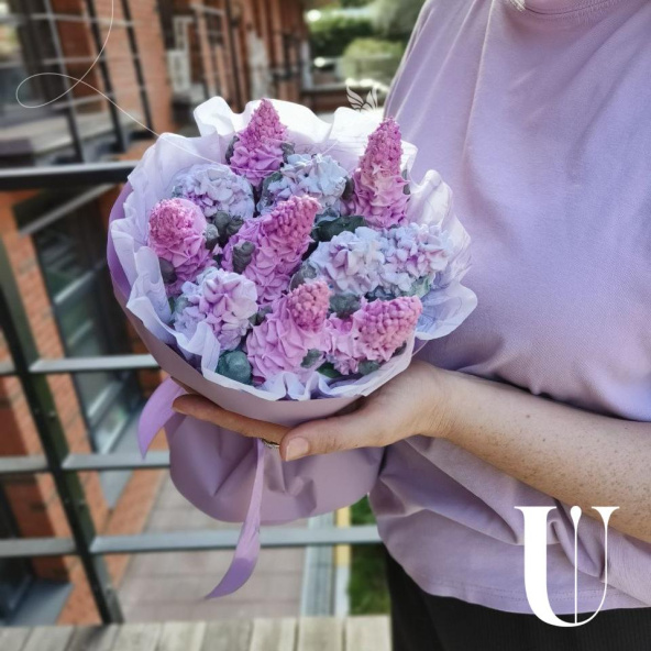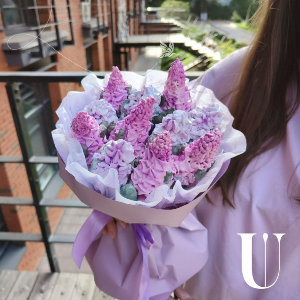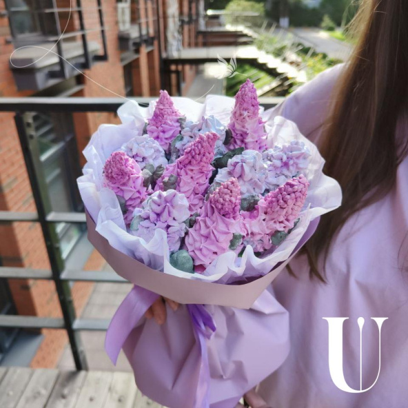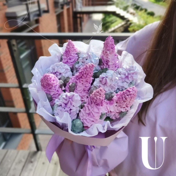 Милый букет из зефирных цветов! Классное универсальное сочетание как по цветам, так и по цветовому сочетанию) понравится вашей получательнице , тем более, что букет можно попробовать! Зефир не сладкий, полностью натуральный!