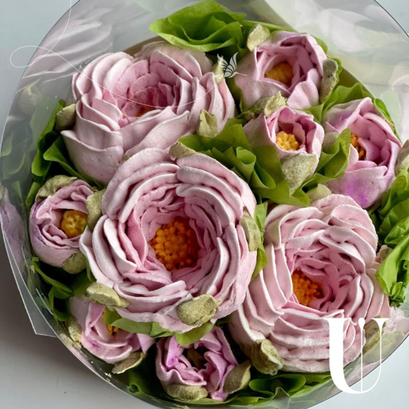 Каждый цветок выполнен вручную из натуральных ингредиентов: ягодного пюре, белка и сахара. Без искусственных красителей и консервантов.