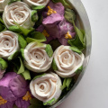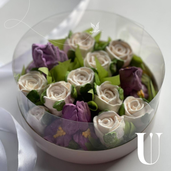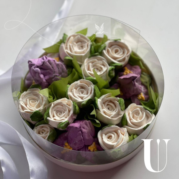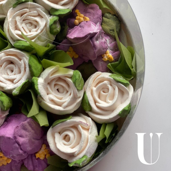 Каждый цветок выполнен вручную из натуральных ингредиентов: ягодного пюре, белка и сахара. Без искусственных красителей и консервантов.