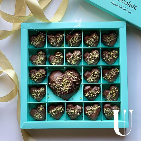 состав: шоколад белый Callebaut 28%, паста фисташковая, малина сублемированная, пишмание со вкусом граната, пишмание со вкусом ванили.
