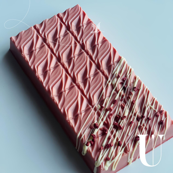 Состав: шоколад белый Callebaut 28%, паста фисташковая, малина сублемированная, пишмание со вкусом граната, пишмание со вкусом ванили.