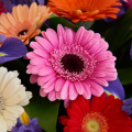 Классический букет из роз сорта Мисс Пигги и мини гербер