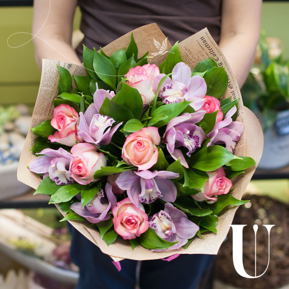 - Орхидея цимбидиум розовая на удлинителе - 9 шт