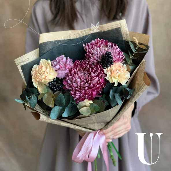 - Хризантема одноголовая шарообразная, фиолетовая - 2 шт