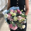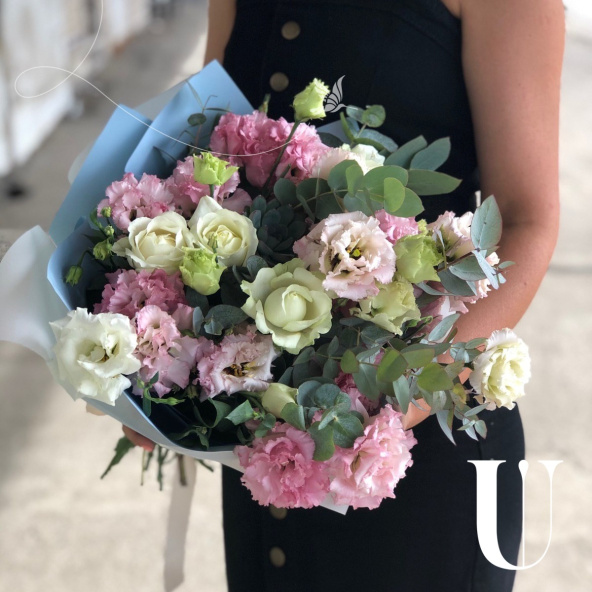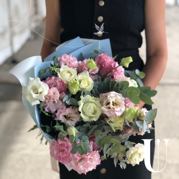 Пленительная нежность эустомы в сочетании с розой, не сможет оставить равнодушным ни одного получателя