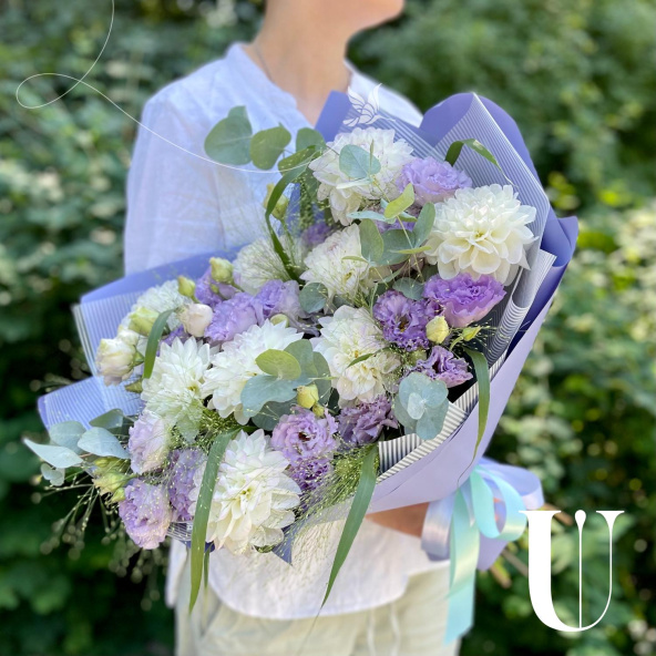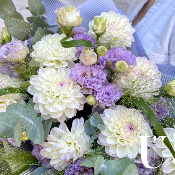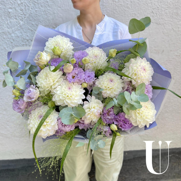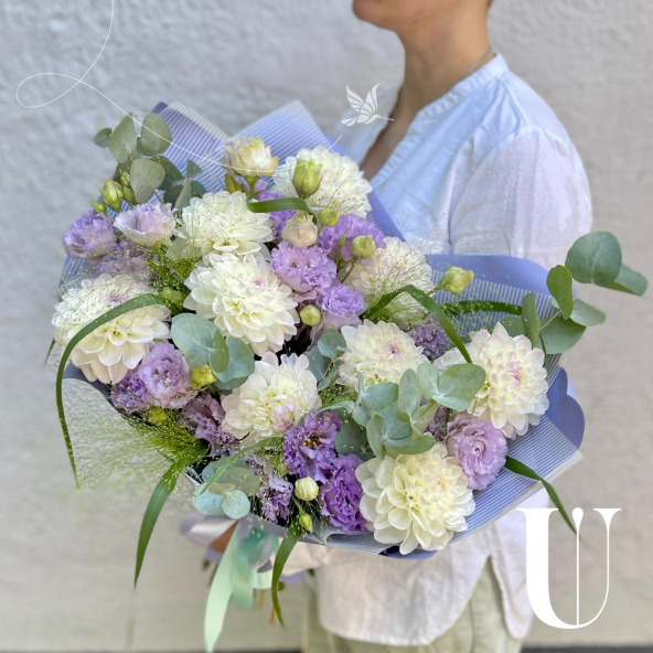 - Георгина Эвелин, бело-сиреневая - 9 шт