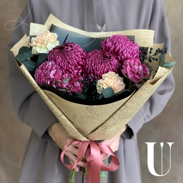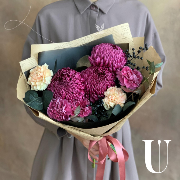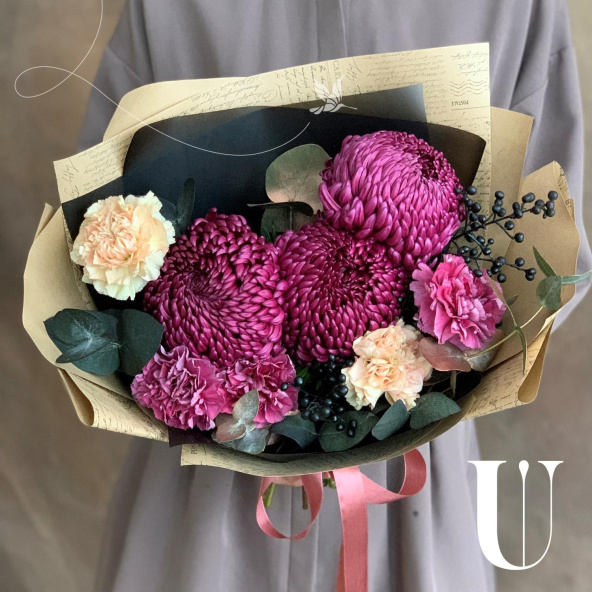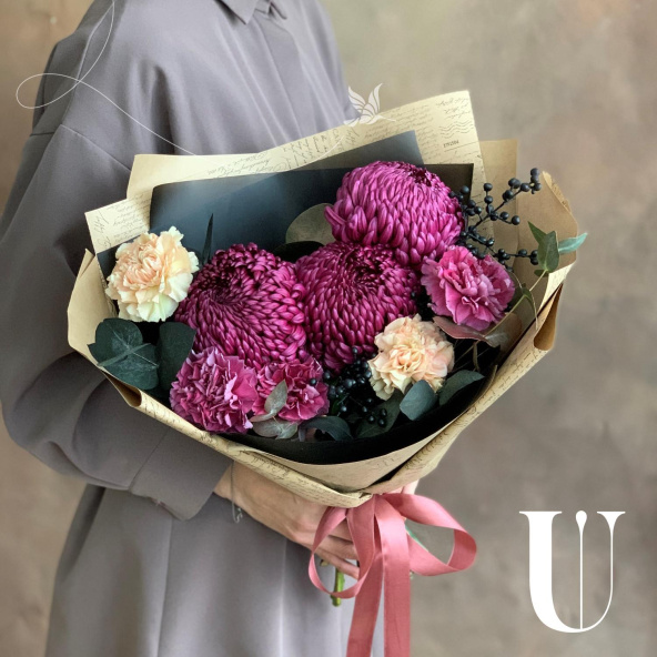 - Хризантема одноголовая шарообразная, фиолетовая - 3 шт