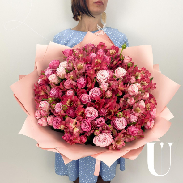 - Роза кустовая пионовидная, Бомбастик, розовая, 60 см. - 20 шт