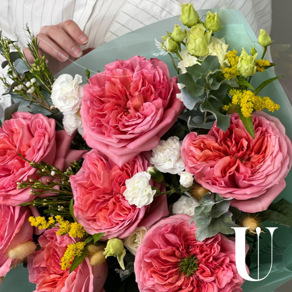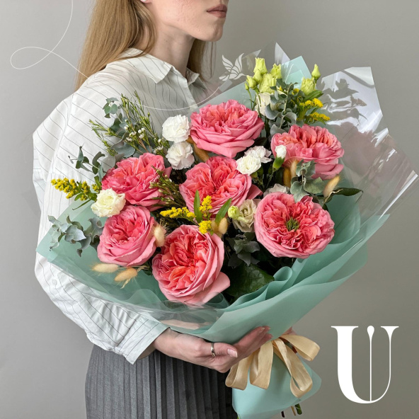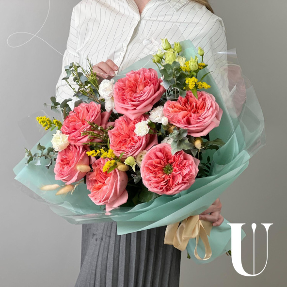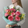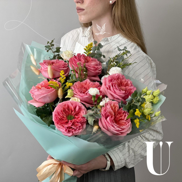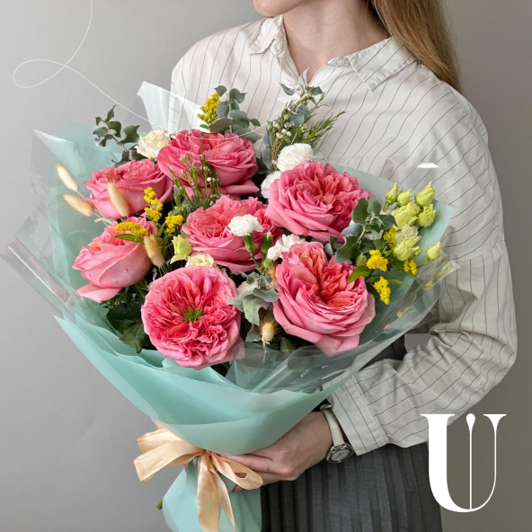 - Роза пионовидная Пинк Экспрешн, розовая, 50 см - 7 шт