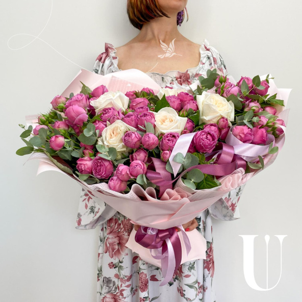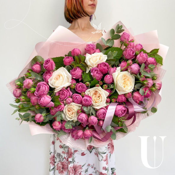 - Роза Вайт Охара, Эквадор, бело-розовая, пионовидная 50 см. - 5 шт