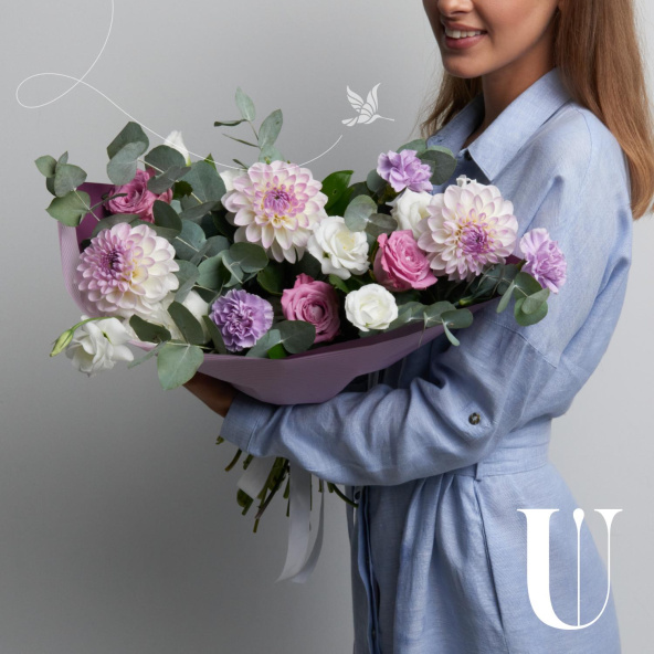 - Георгина Эвелин, бело-сиреневая - 3 шт