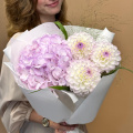 Цветочная композиция из гортензии, гвоздик и альстромерии