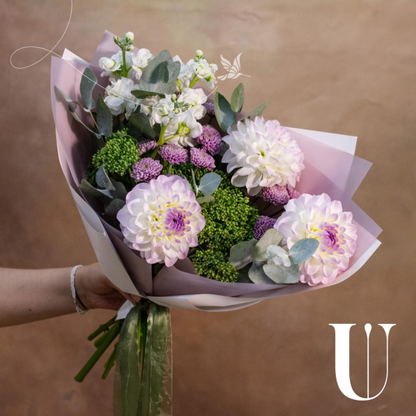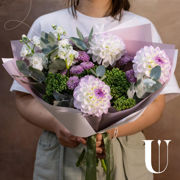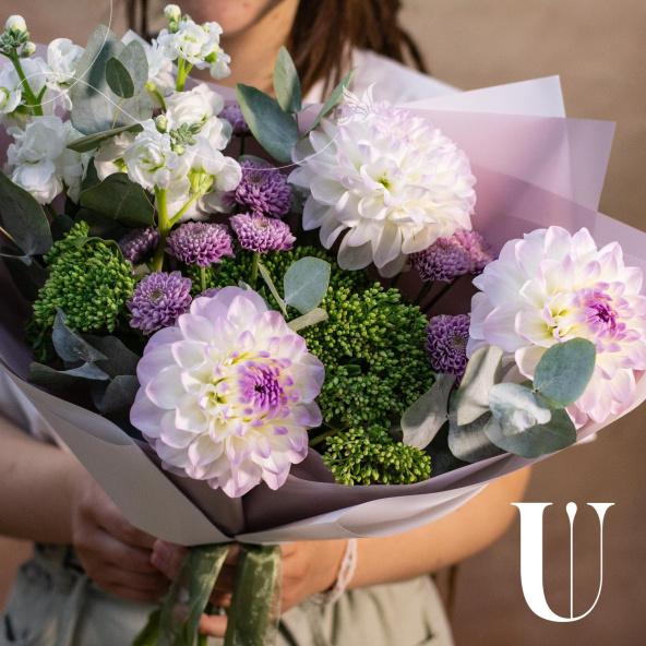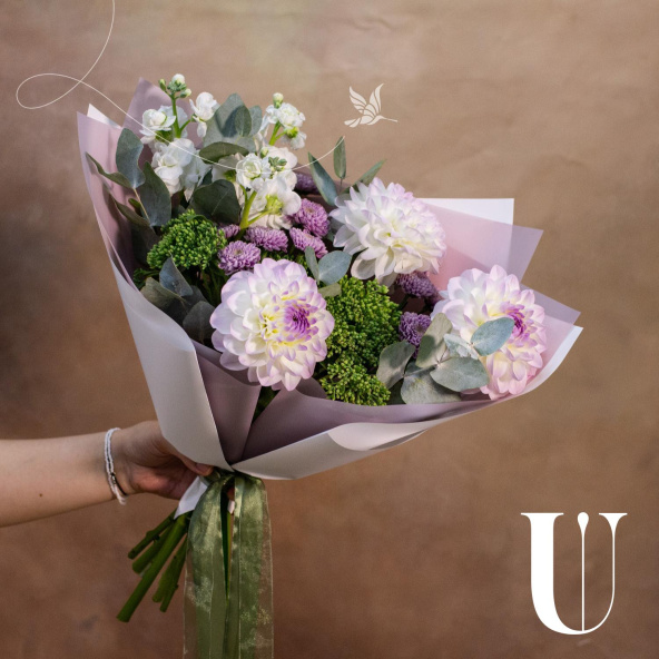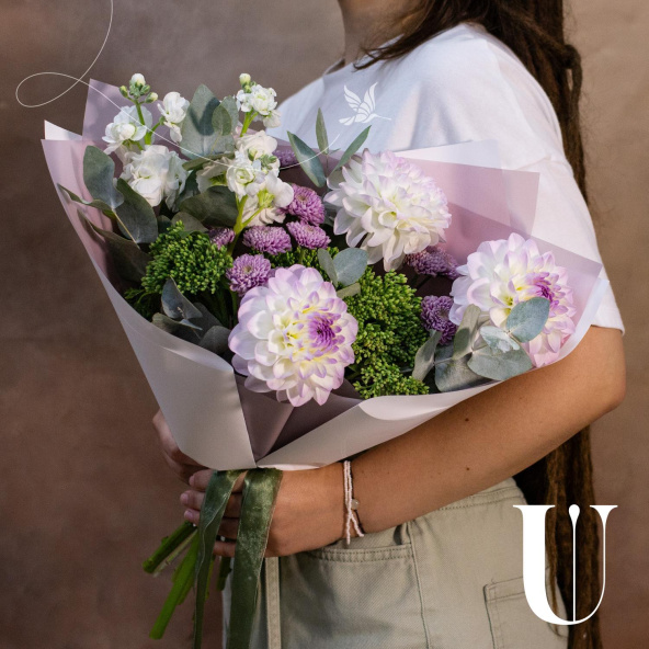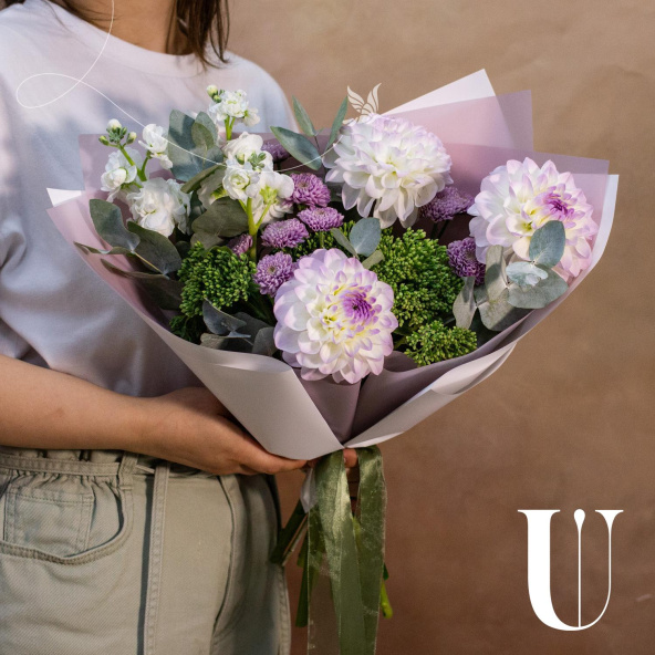 - Георгина Эвелин, бело-сиреневая - 3 шт