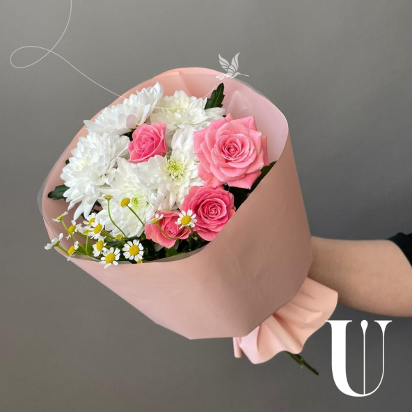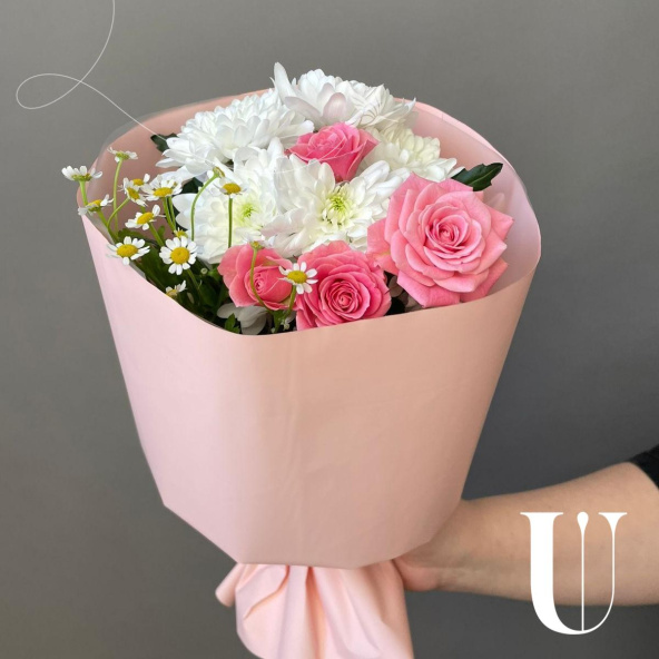 - Роза кустовая, розовая, 50 см. - 1 шт