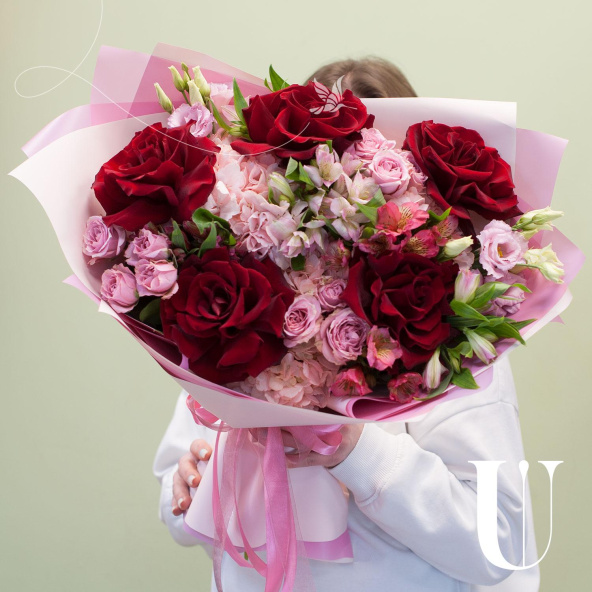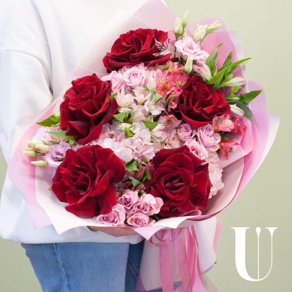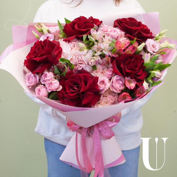 - Роза кустовая, розовая, 50 см. - 3 шт