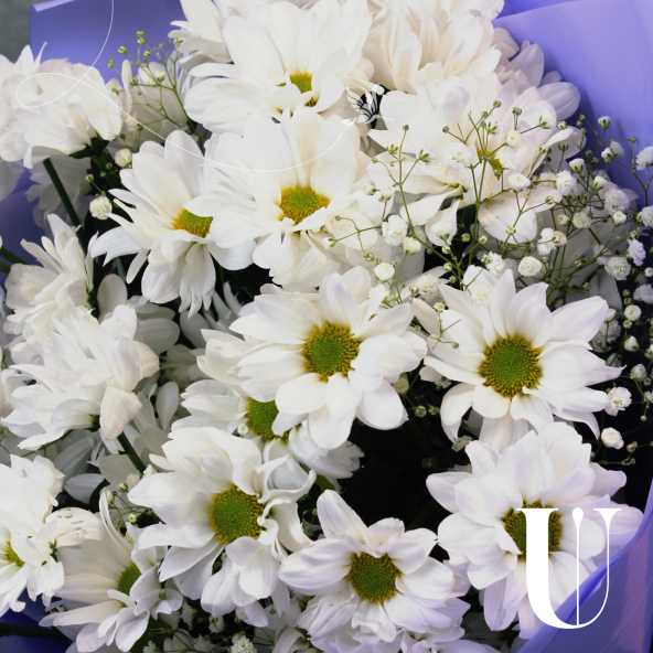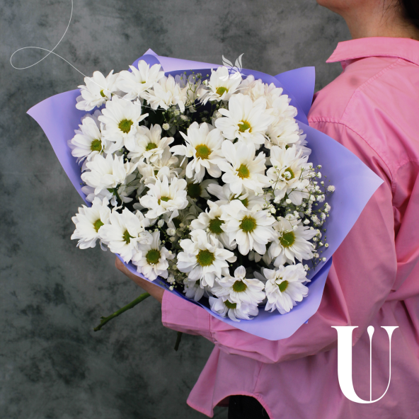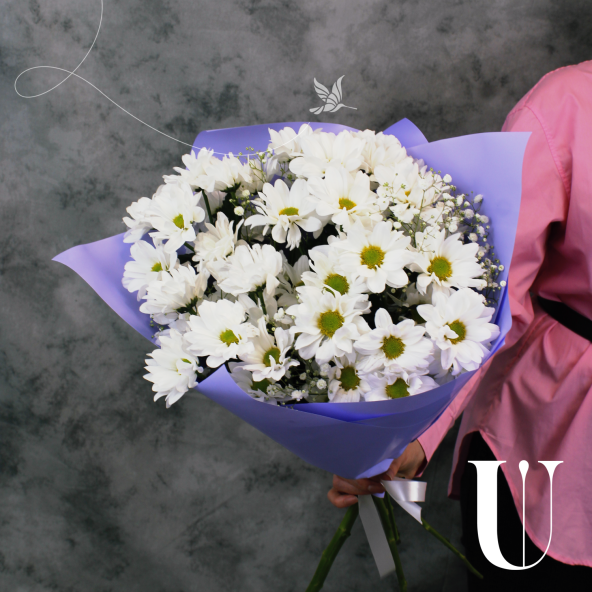 Выбирая классический сборный букет из 5 белых кустовых ромашковых хризантем с гипсофилой, Вы делаете прекрасный и запоминающийся подарок, который будет радовать получателя своей элегантностью и нежностью.