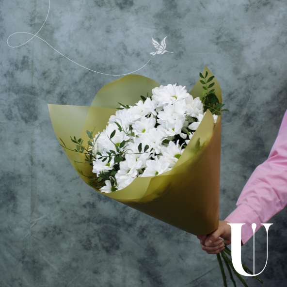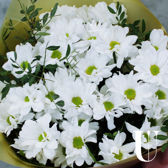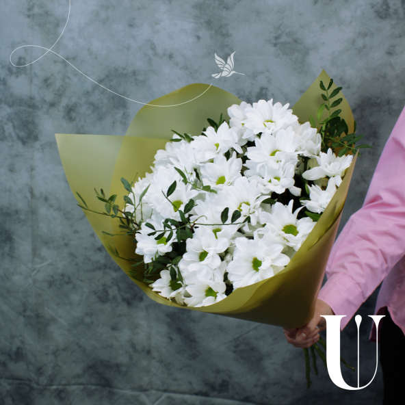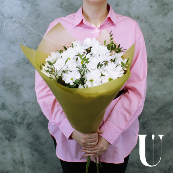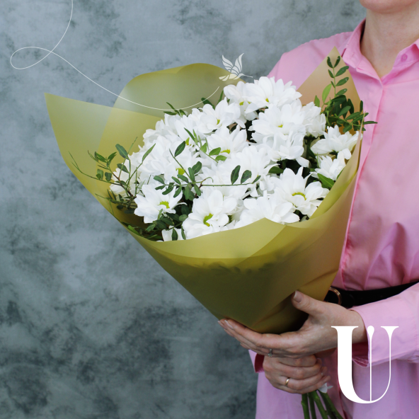 Выбирая классический сборный букет из 5 белых кустовых хризантем с фисташкой, Вы делаете прекрасный и запоминающийся подарок, который будет радовать получателя своей элегантностью и нежностью.
