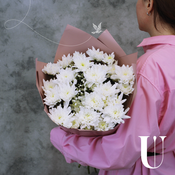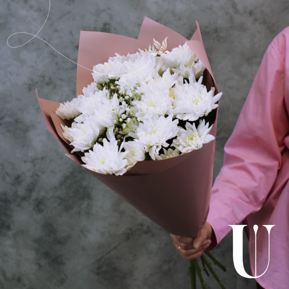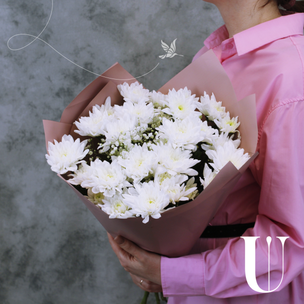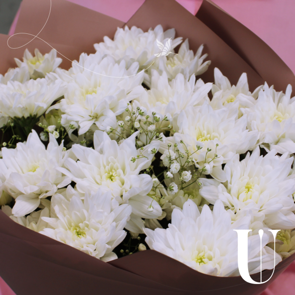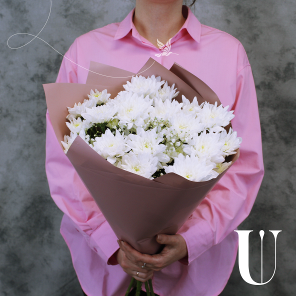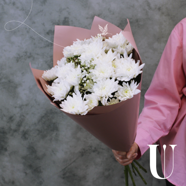 Выбирая классический сборный букет из 5 белых кустовых хризантем с гипсофилой, Вы делаете прекрасный и запоминающийся подарок, который будет радовать получателя своей элегантностью и нежностью.